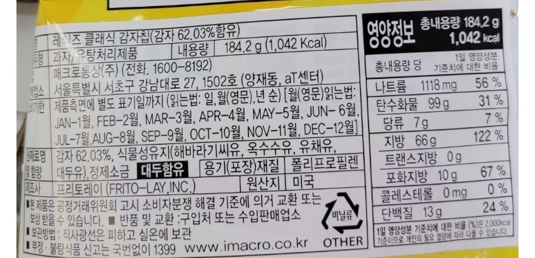 [017145] 레이즈 클래식 감자칩 184.2g