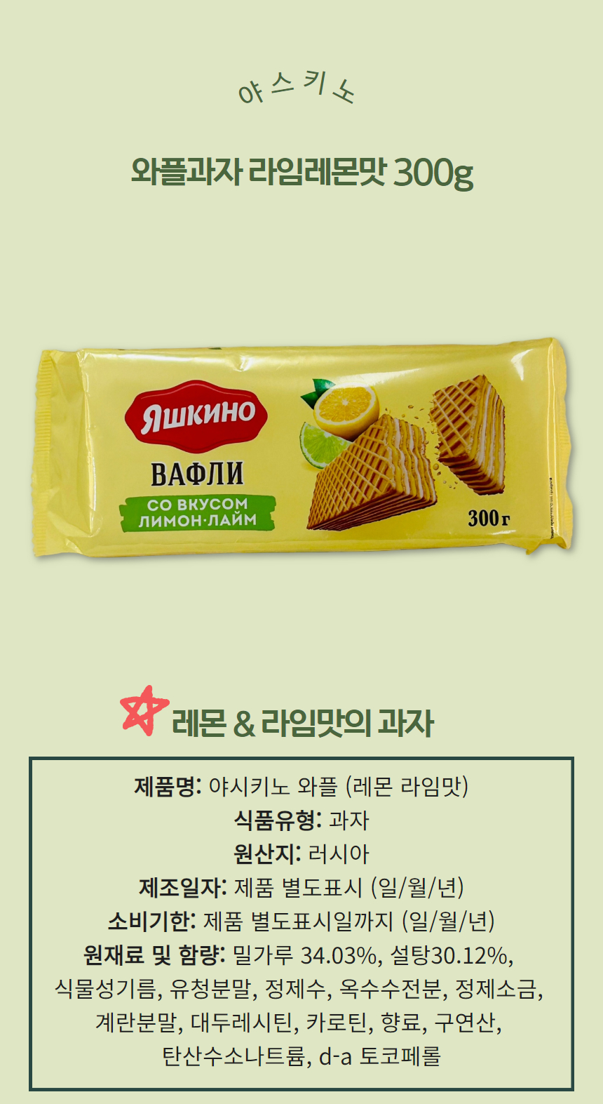 [234633] 야스키노 와플과자 라임레몬맛 300g*2개