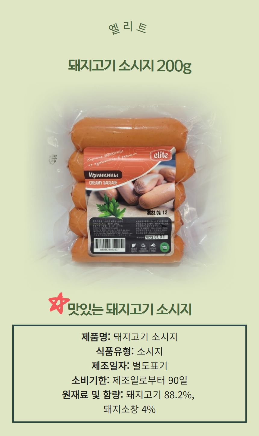 [930407] 엘리트 돼지고기 소시지 200g