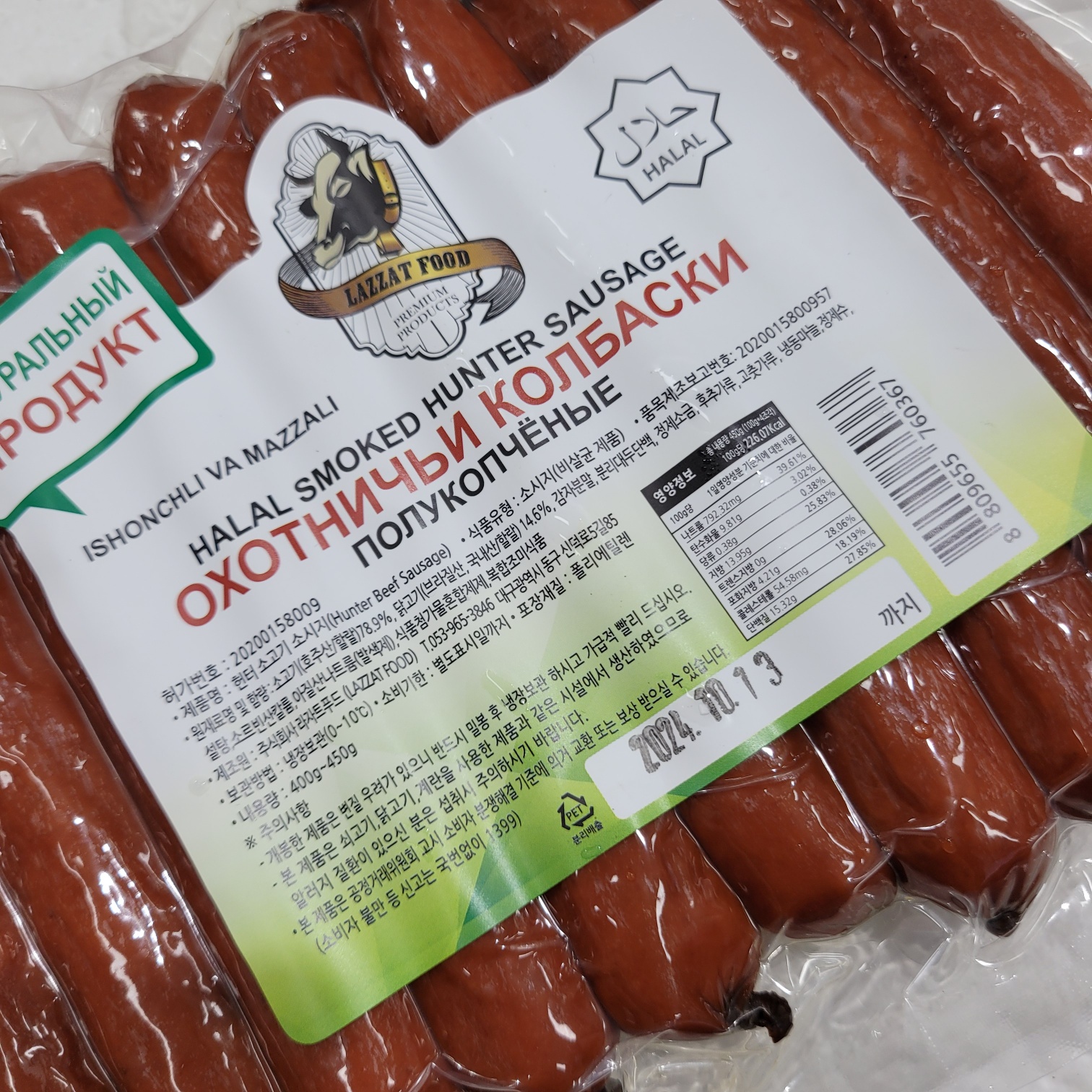 [760367] 라자트푸드 할랄 헌터 소고기 소시지 400g