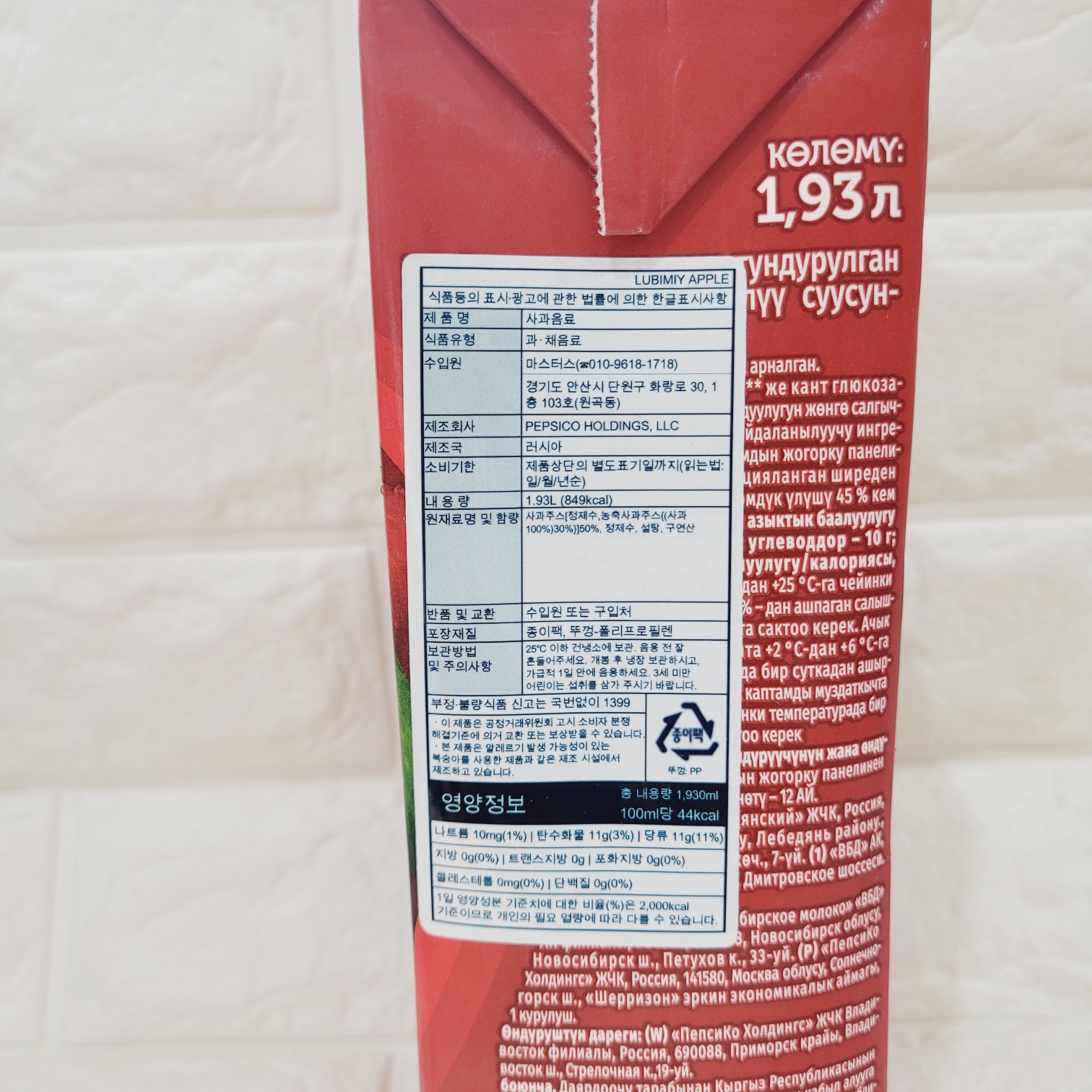 [663260] "사랑하는" 사과 음료 1.93L