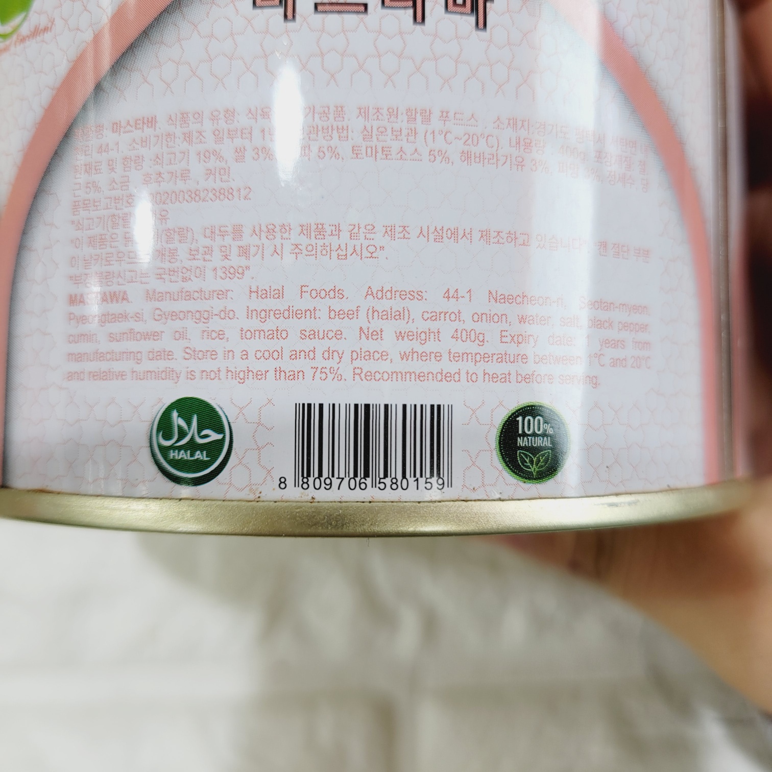 [580159] 할랄푸드스 마스타바 통조림 400g