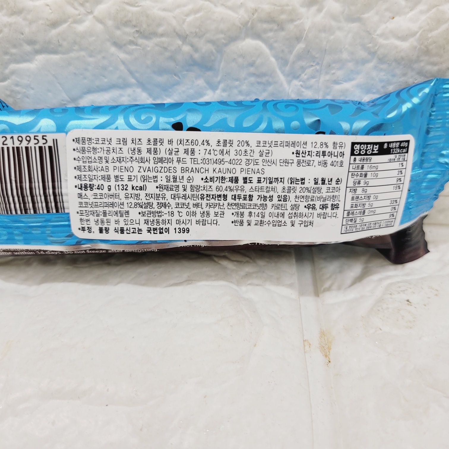 [219955] 스발리아 코코넛 크림 치즈 초콜릿 바 40g * 2개