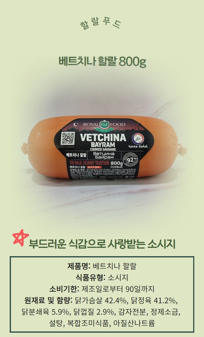 [810430] 로얄푸드 배트치나 할랄 소시지 800g