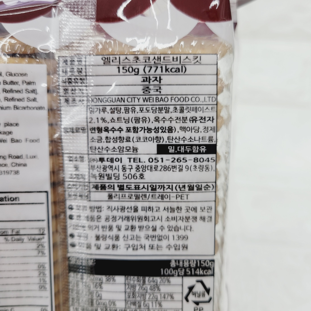 2. 앨리스 초코샌드 비스킷 150g
