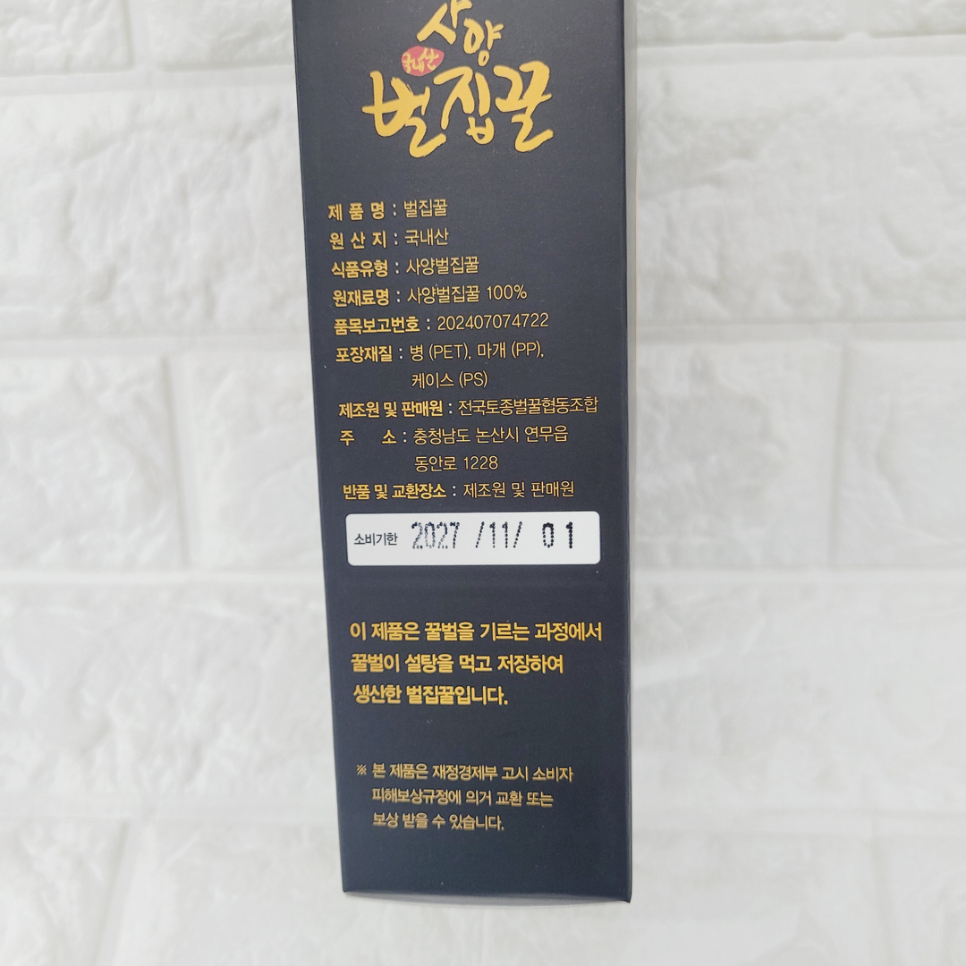 천연 벌꿀의 특성상 미량의 꽃가루가 포함될 수 있으니, 알레르기에 주의하십시오.
