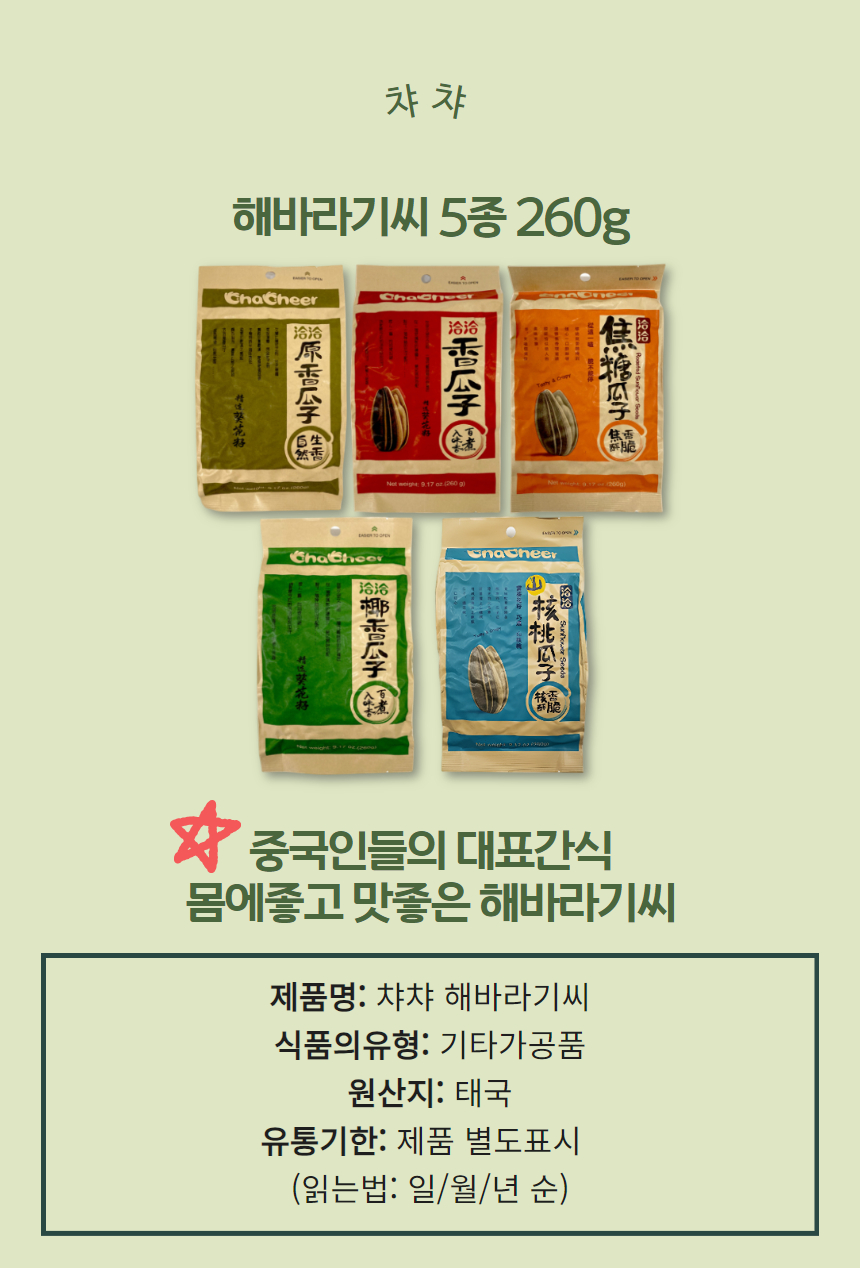 챠챠 해바라기씨 260g 5종 [600092][600115][600139][600078][600054]