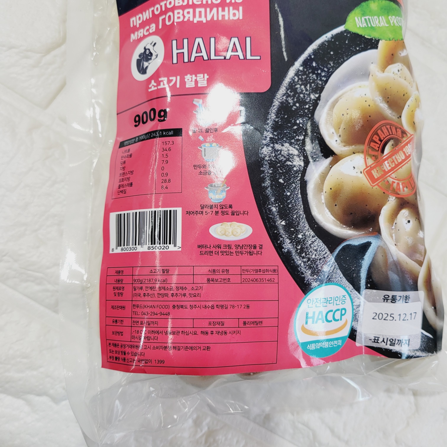 [850020] 한푸드 소고기 러시아식 할랄 물만두 뻴메니 900g